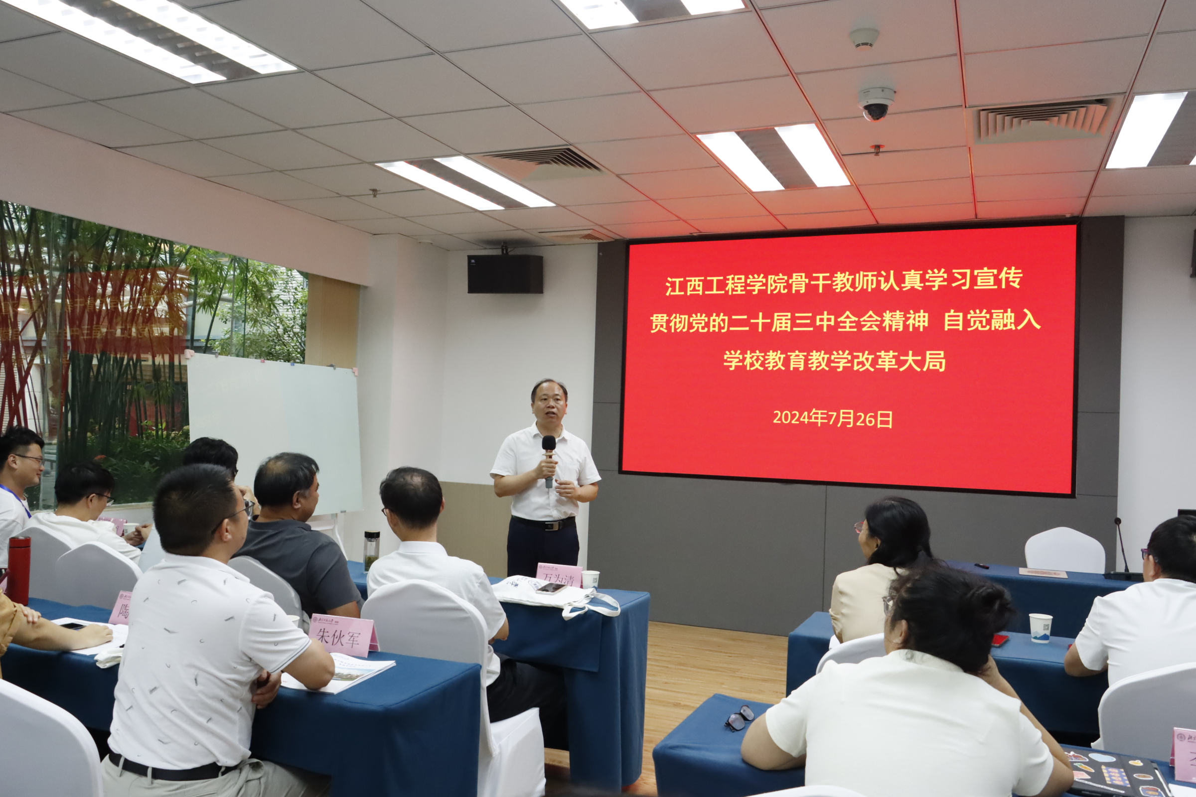 “要全面贯彻习近平新时代中国特色社会主义思想,深入学习贯彻习近平总书记关于全面深化改革的一系列新思想、新观点、新论断,把学习好贯彻好党的二十届三中全会精神作为当前和今后一个时期的重大政治任务,精心组织、周密部署,深刻领会和把握进一步全面深化改革的主题、重大原则、重大举措、根本保证,切实用党的二十届三中全会精神统一思想、指导实践、推动改革,做到学在深处、谋在新处、干在实处。”华亿平台党委副书记、副校长冯赟要求学校党员师生要在基层开展学习宣讲党的二十届三中全会精神。