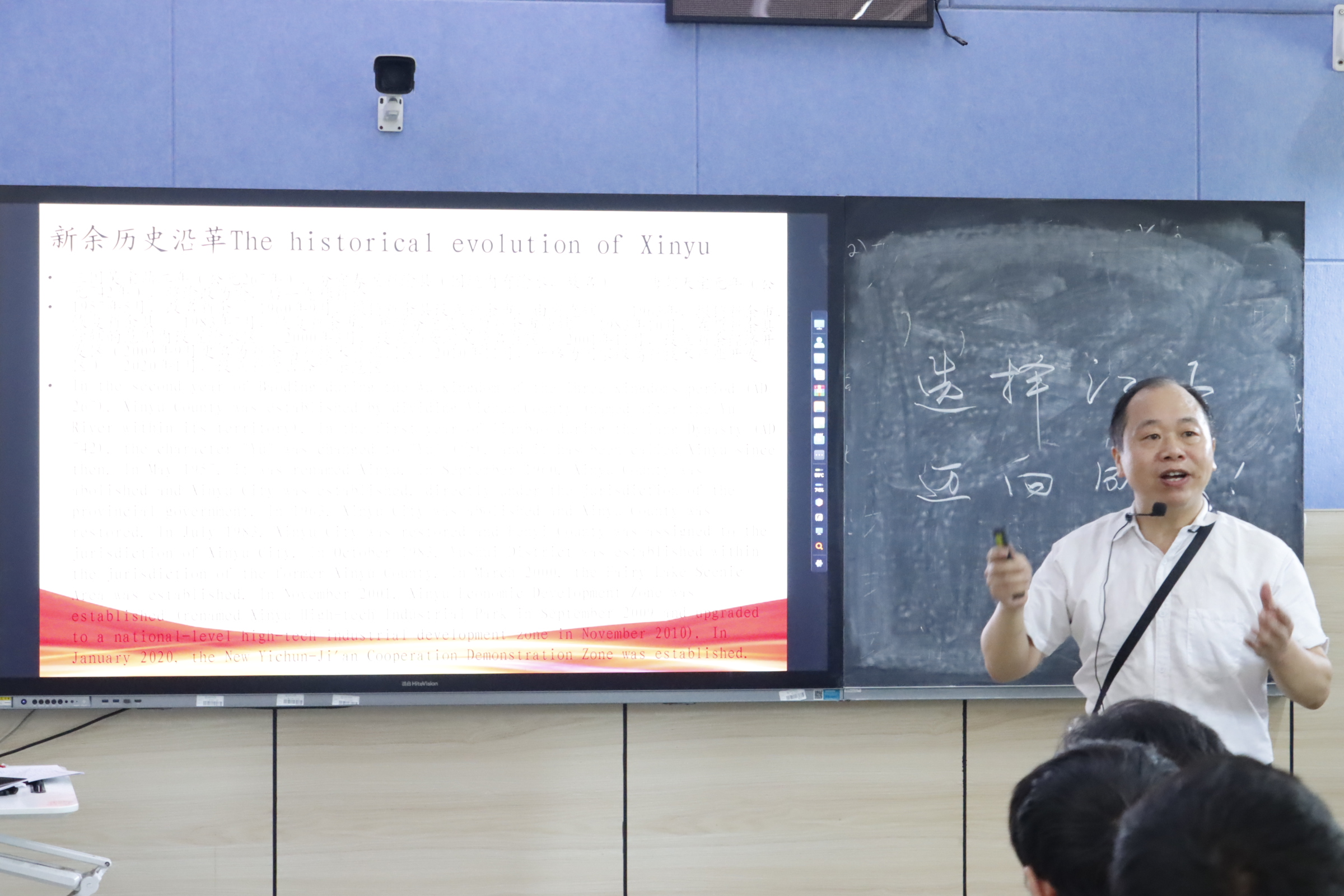 于永清老师不仅以音乐动人,更在课堂上对新余这座城市进行了细致入微且全面深入地介绍。从新余的历史文化、风土人情,到其在现代社会中的发展成就,诸如一座湖(仙女湖)、一个会议(罗坊会议)、一本书(天工开物)、一位大师(傅抱石)、一匹布(夏布)、一个洞(洞都),更让它充满了历史底蕴和人文魅力,课堂上,一连串精确的数据、一个个生动的故事,让他们对江西、对新余、对华亿平台的热爱之情油然而生。