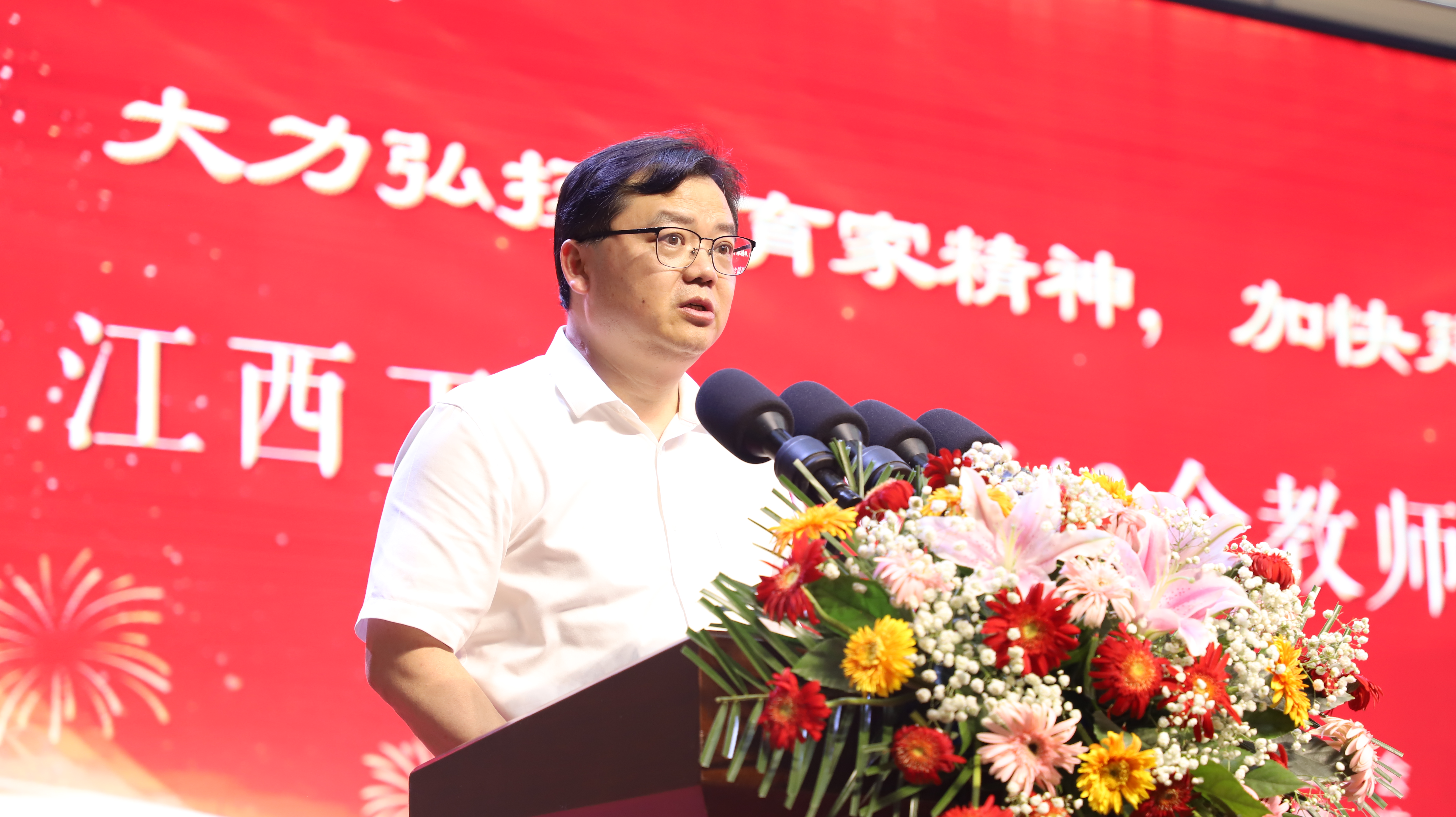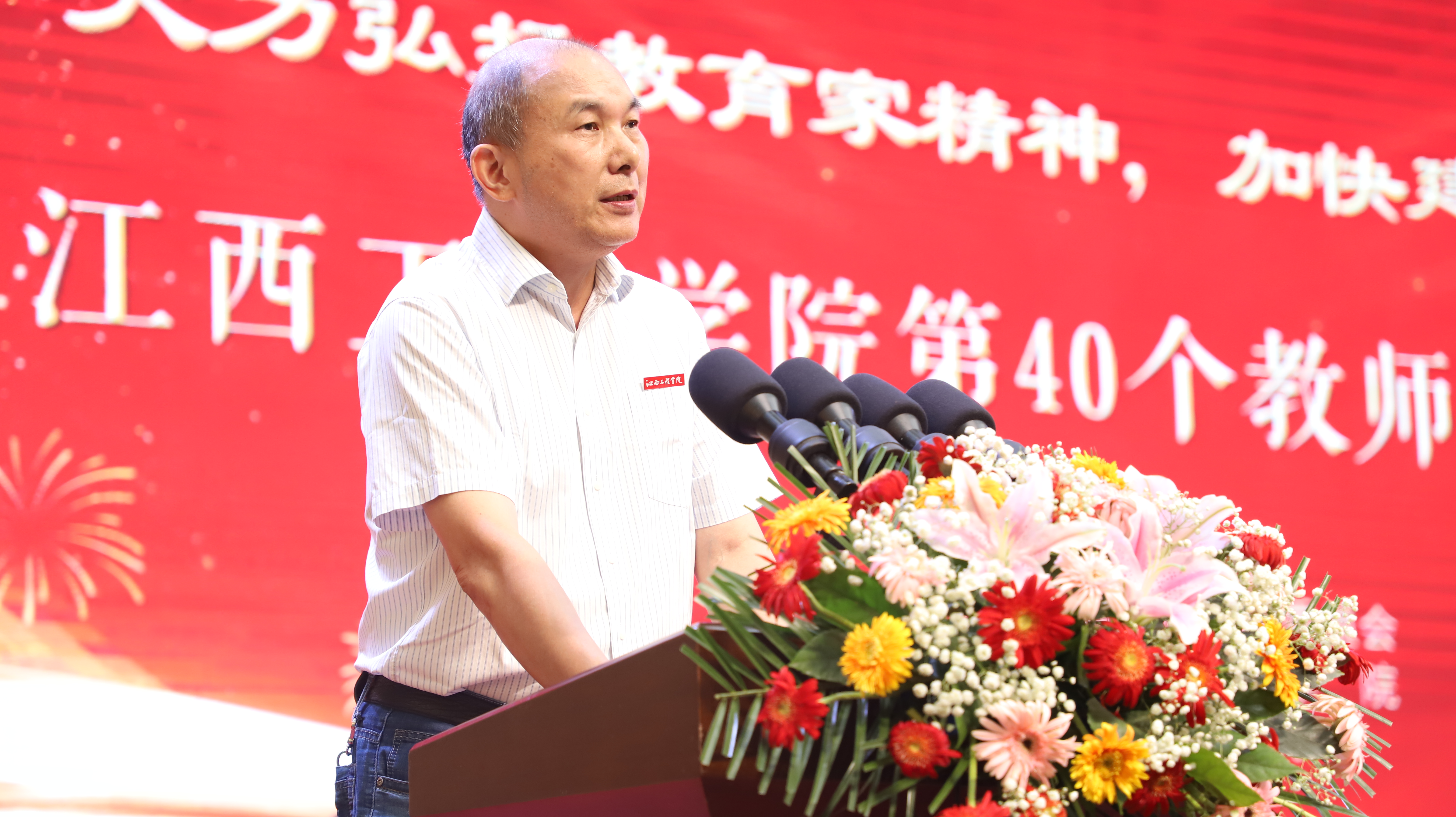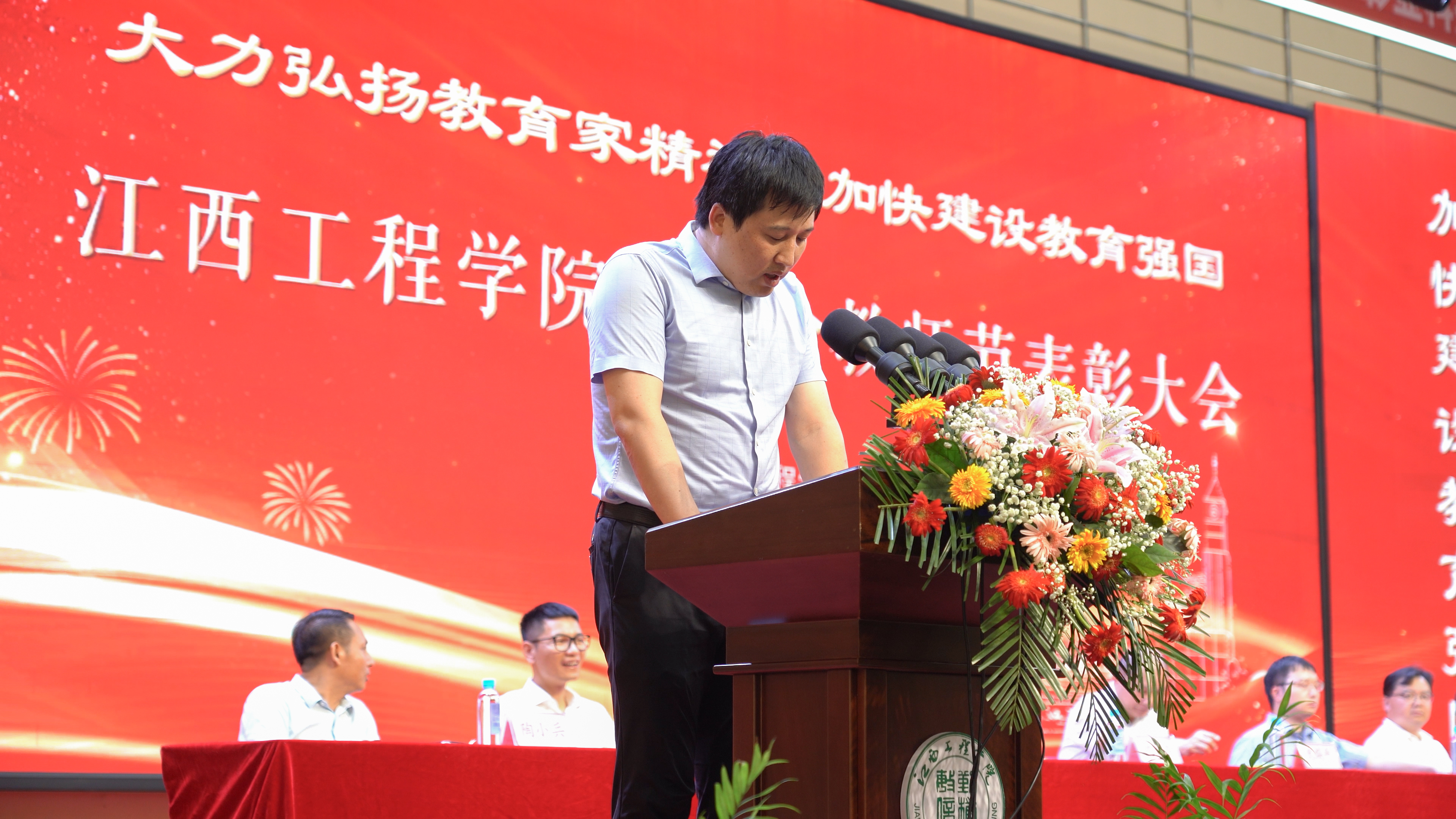 党委书记、督导专员魏建克充分肯定了过去一年全校教职工取得的成绩,他指出,“强国必先强教,强教必先强师”,长期以来,以习近平同志为核心的党中央对教师队伍建设给予了持久关注和深入思考,既是中国教育实践的思想结晶和精神升华,更是新时代教师力行致远的内生动力和精神指引。他强调,教师是推动学校事业高质量发展的“第一资源”,一要深刻领悟教育家精神科学内涵,在坚定理想信念上下功夫;二要真正树立躬耕教坛、强国有我的志向和抱负,在律己修身上下功夫;三要积极传承和弘扬天工文化,在提高人才培养质量上下功夫;四要创新推动思政育人的务实之举和工作成效,在以仁爱之心育人上下功夫。希望老师们与学校携手并进,努力绘就学校发展与个人成长双向奔赴的同心圆,奋力谱写建设教育强国、教育强省的江工故事!