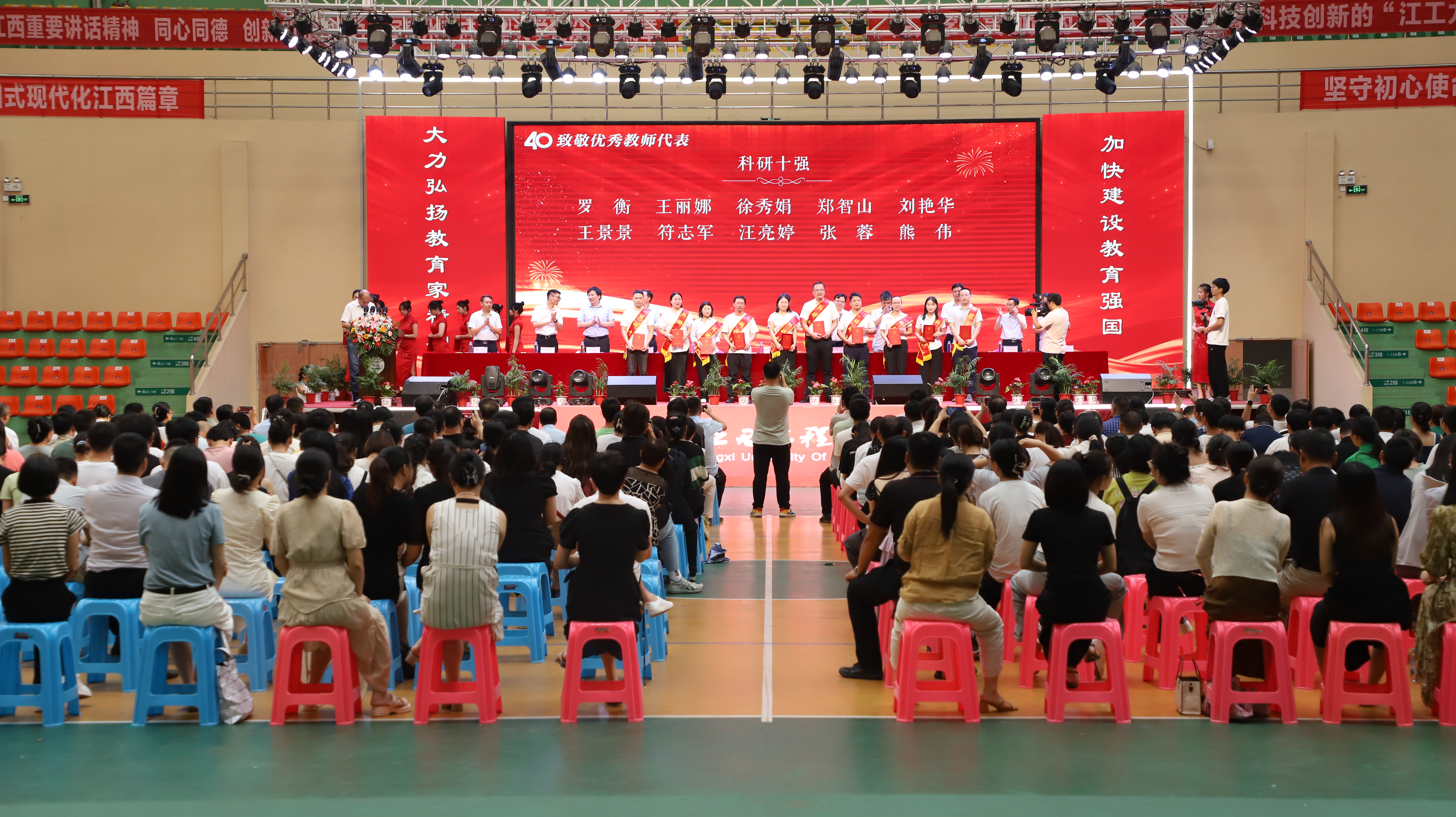 教师节设立以来,广大教师牢记为党育人、为国育才使命,扎根三尺讲台,潜心教书育人,始终同党和人民站在一起,以赤诚之心、奉献之心、仁爱之心投身教育事业。本次大会进一步明确了我校以教育家精神全方位引领高素质教师队伍建设的目标,彰显了广大教职员工守望初心担使命,奋楫笃行绽芳华的坚定信心,激励广大教师为学校全面建设特色鲜明的高水平应用型大学,为教育强国、教育强省建设作出新的更大贡献!