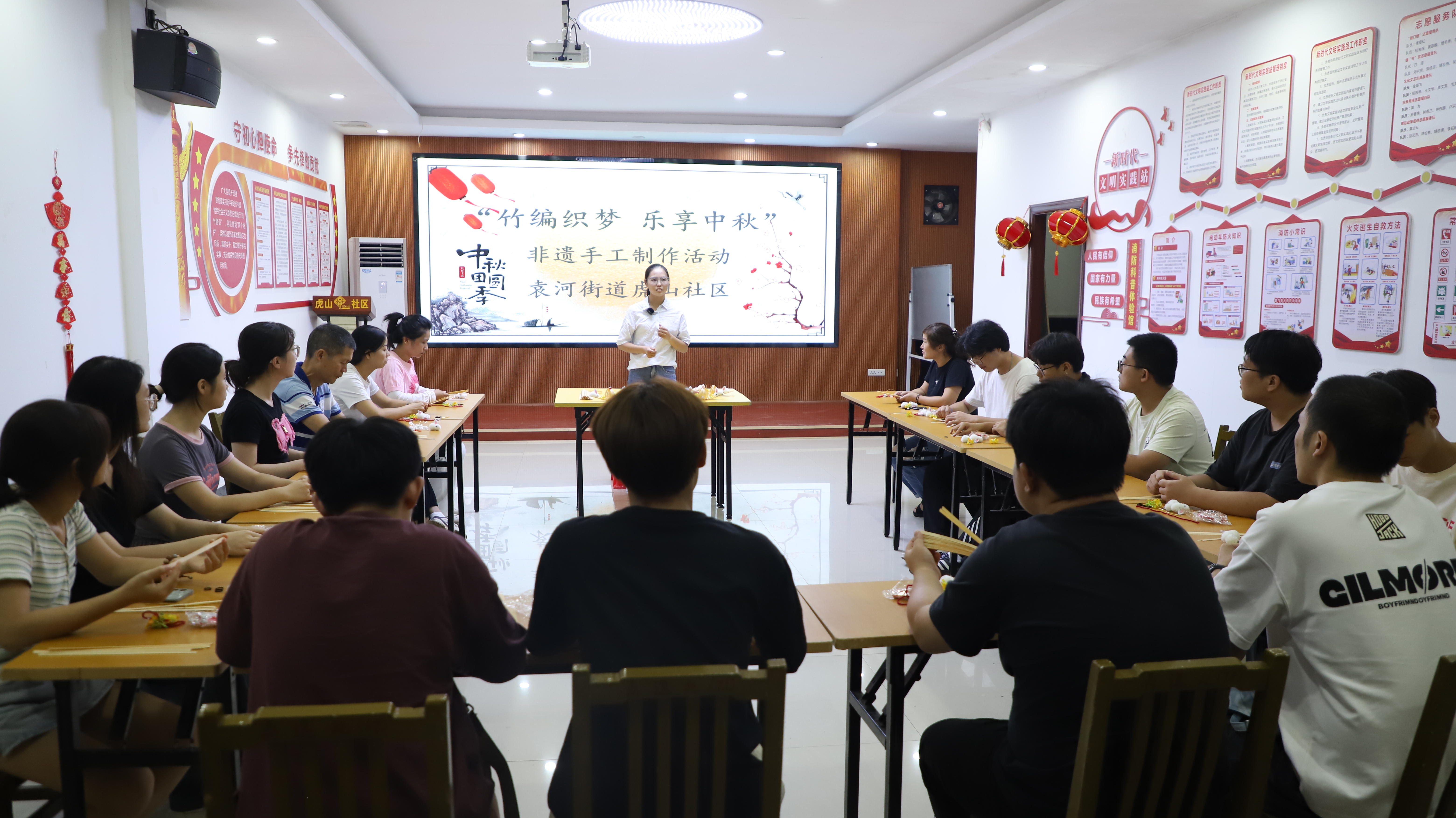 在虎山社区,竹编手艺人向大家介绍竹编的历史源流及传承意义,指出竹编技艺来源于普通人民生活中,经过历史的演变逐渐走向后来的艺术性。随后,同学们和社区居民分散到各桌动手编织。整个学习过程其乐融融,大家通过“压”“挑”等技巧,制作出小型的竹编“船灯”编织品,并为它们点缀上发光灯装饰品,将编织品变为一个个中秋“灯笼”。“很有氛围感,做出来的成品非常好看!”2023级电子商务本科2班余婷表示,竹编在人们的日常生活中逐渐消失,作为新时代青年大学生,我们要主动去了解这门传统文化,主动学习。