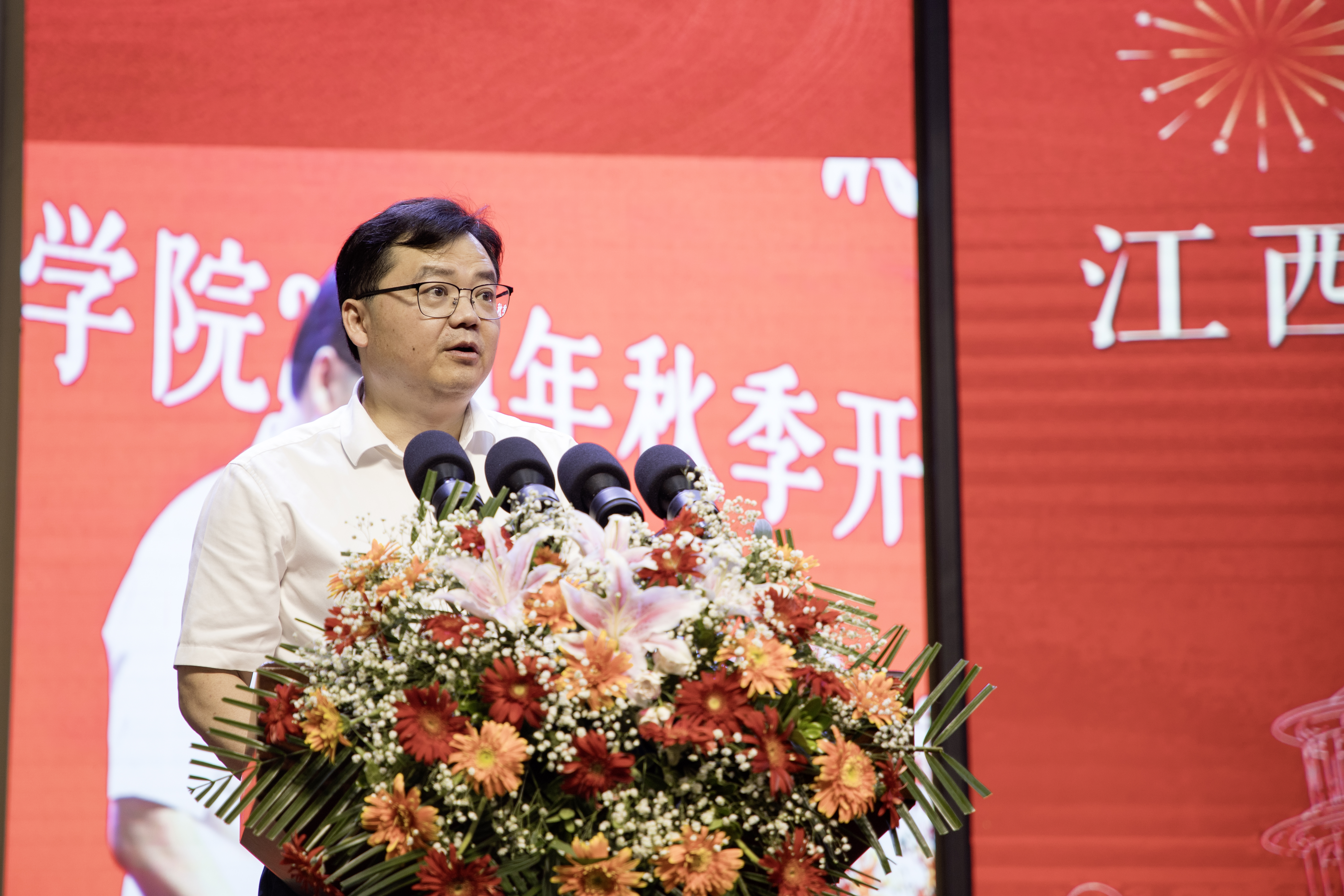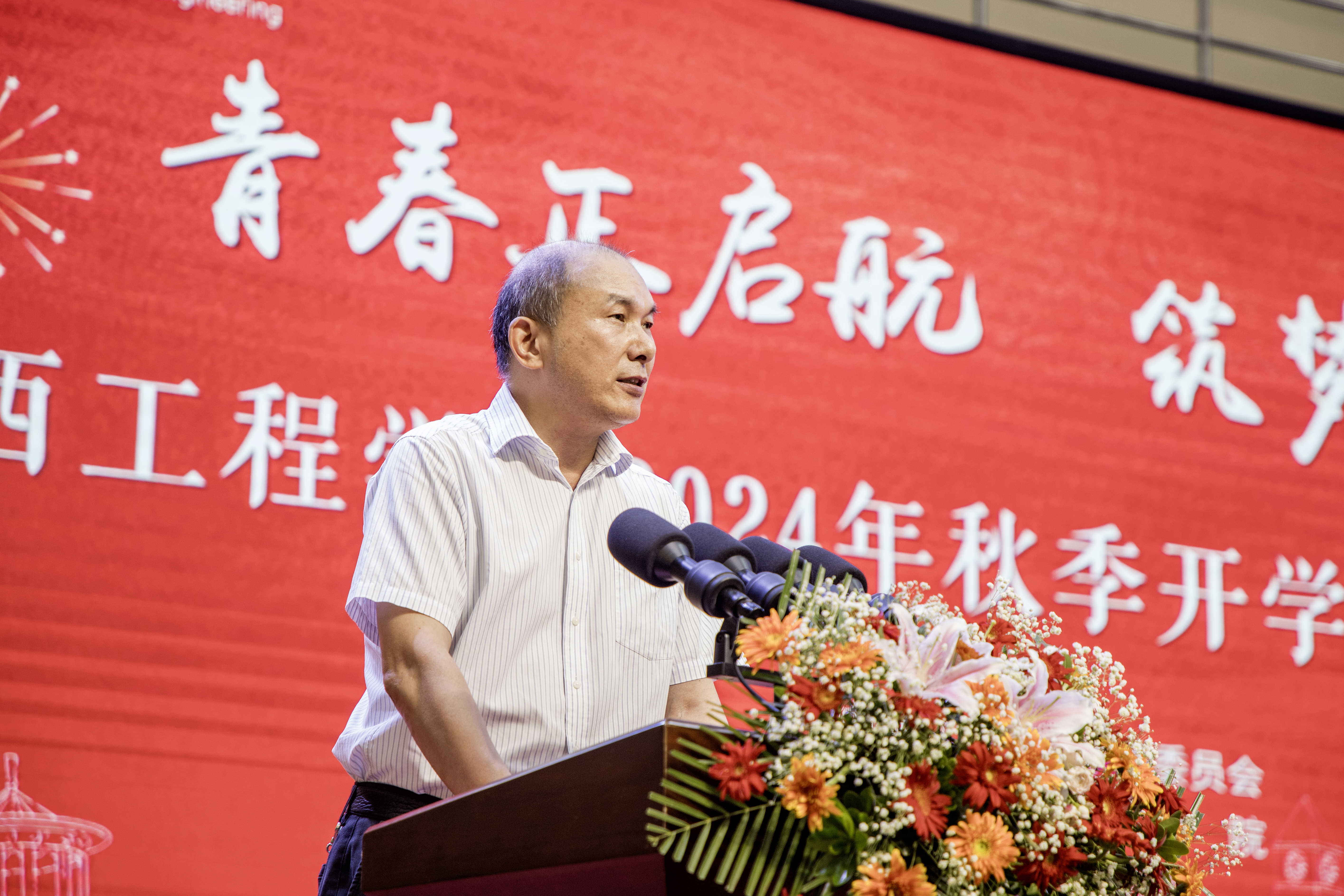 报告中,他向全体新同学提三点希望:一是做“自信”满满的江工学子。我们有“自信”的根基、有“自信”的资本还有“自信”的榜样。全体同学要以“天生我材必有用”的自信,将个人的发展与国家的前途命运紧密相连,勇于担当起新时代赋予青年学子的使命和责任,做时代的弄潮儿,为实现中华民族伟大复兴的中国梦贡献青春力量;二是做“自强”不息的江工学子。自强,既要学业强也要能力强、还要做到自胜。同学们要勤耕学问之道,永不松懈。在学好书本知识的同时提高自己的实践能力和动手能力,积极参加学科竞赛,以赛促学、以赛促用、以赛促练、以赛强技、以赛提能。在逆境中保持清醒的头脑,保持坚定的意志和坚强的决心,是同学们将来事业成功的关键;三是做“自立”不凡的江工学子。自立,不仅仅是生活上的自立,更是学习上的自立,自立的更高境界是立德修身。希望同学们树立正确的世界观、人生观和价值观,做到既有个人品德,也有社会公德,更有热爱祖国和人民的大德。做到品德润身、公德善心、大德铸魂。成为有道德、有良知、有责任感的当代大学生。