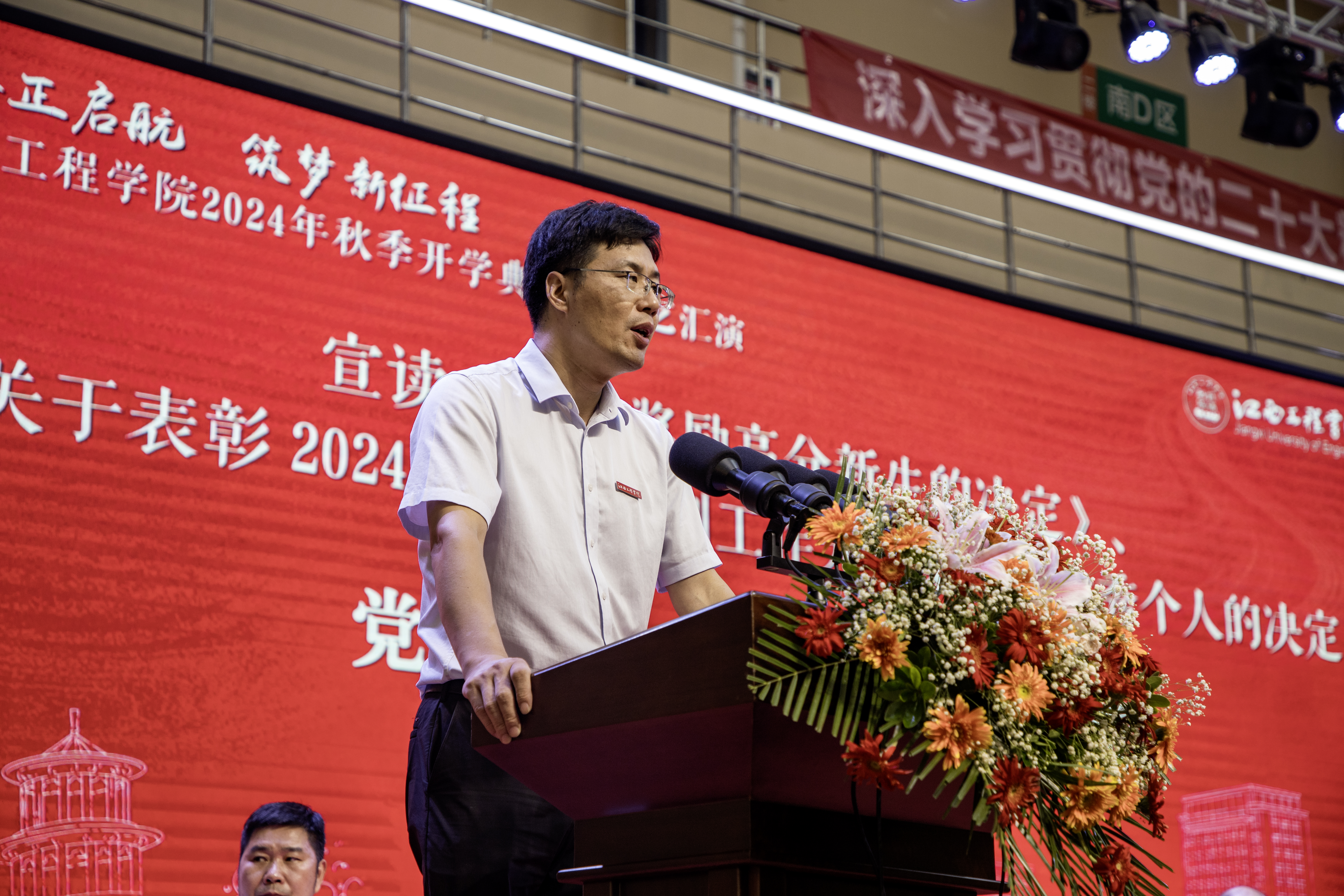 党委副书记、副校长冯赟宣读《关于奖励高分新生的决》《关于表彰2024级新生军事训练优秀集体和个人的决定》。