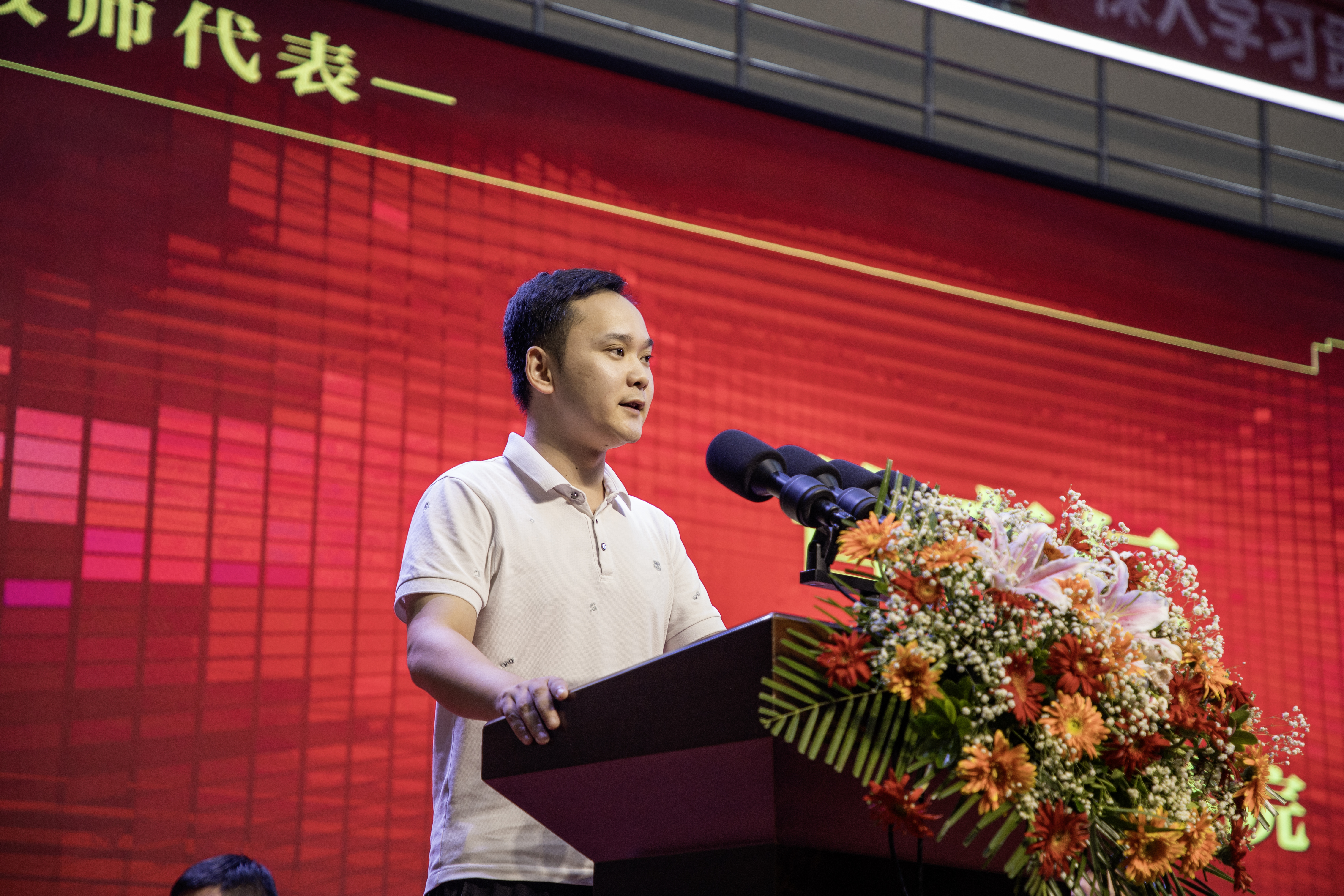 最后,希望同学们弘扬爱国之光,在忠于祖国中实现价值,绽放光彩;希望同学们点燃励志之光,在前进征途中接续奋斗,创造辉煌;希望同学们播撒求真之光,在学习探索中勤奋踏实,勇攀高峰;希望同学们凝聚力行之光,在知行合一中奋楫扬帆,成就未来。