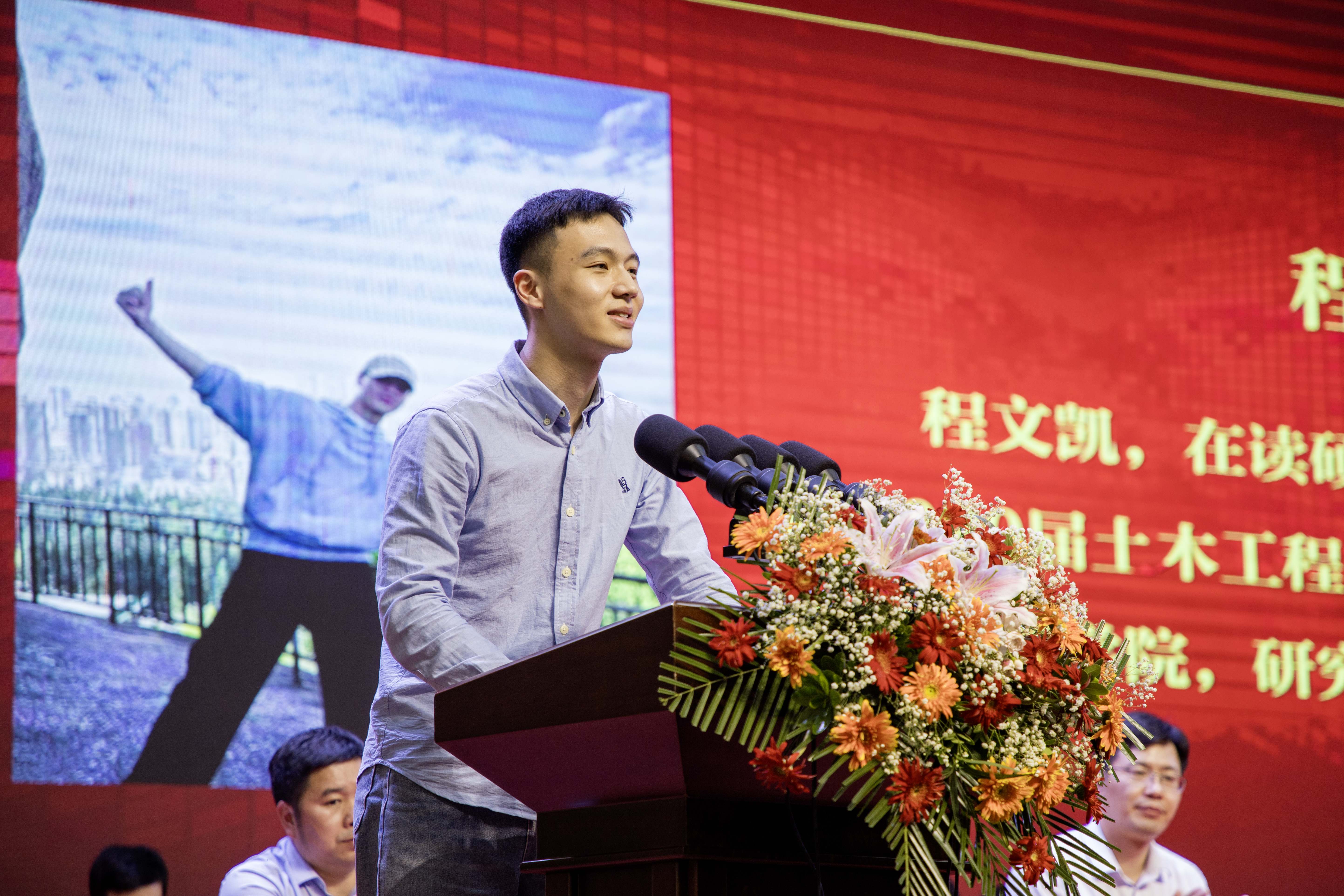 优秀校友代表、2020届土木工程学院土木工程专业毕业生程文凯讲述了在母校的学习生活并分享了自身的学习经验。一是树立明确的学习目标;二是养成良好的学习习惯;三是勇于挑战自我让大学生活充实而有意义。