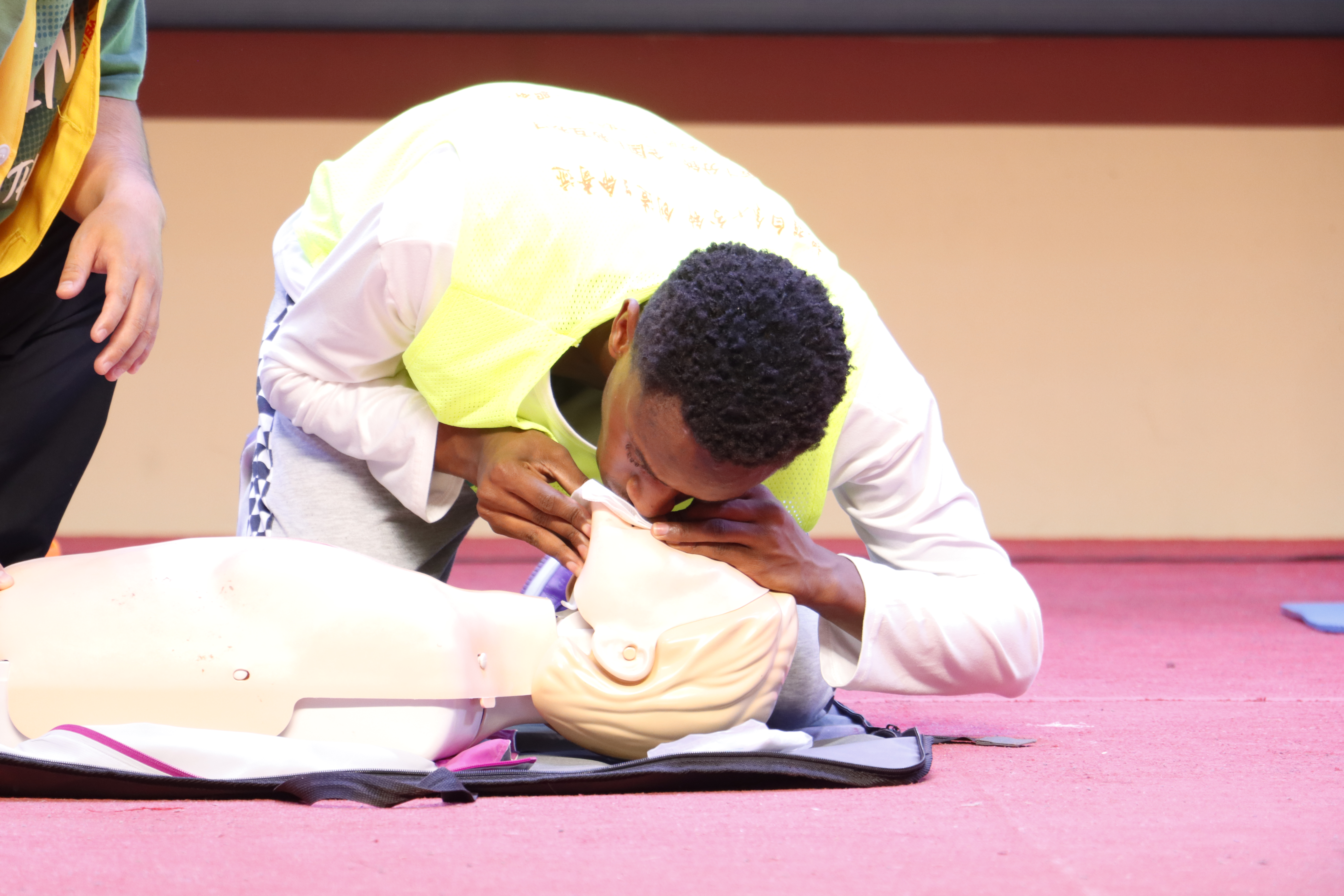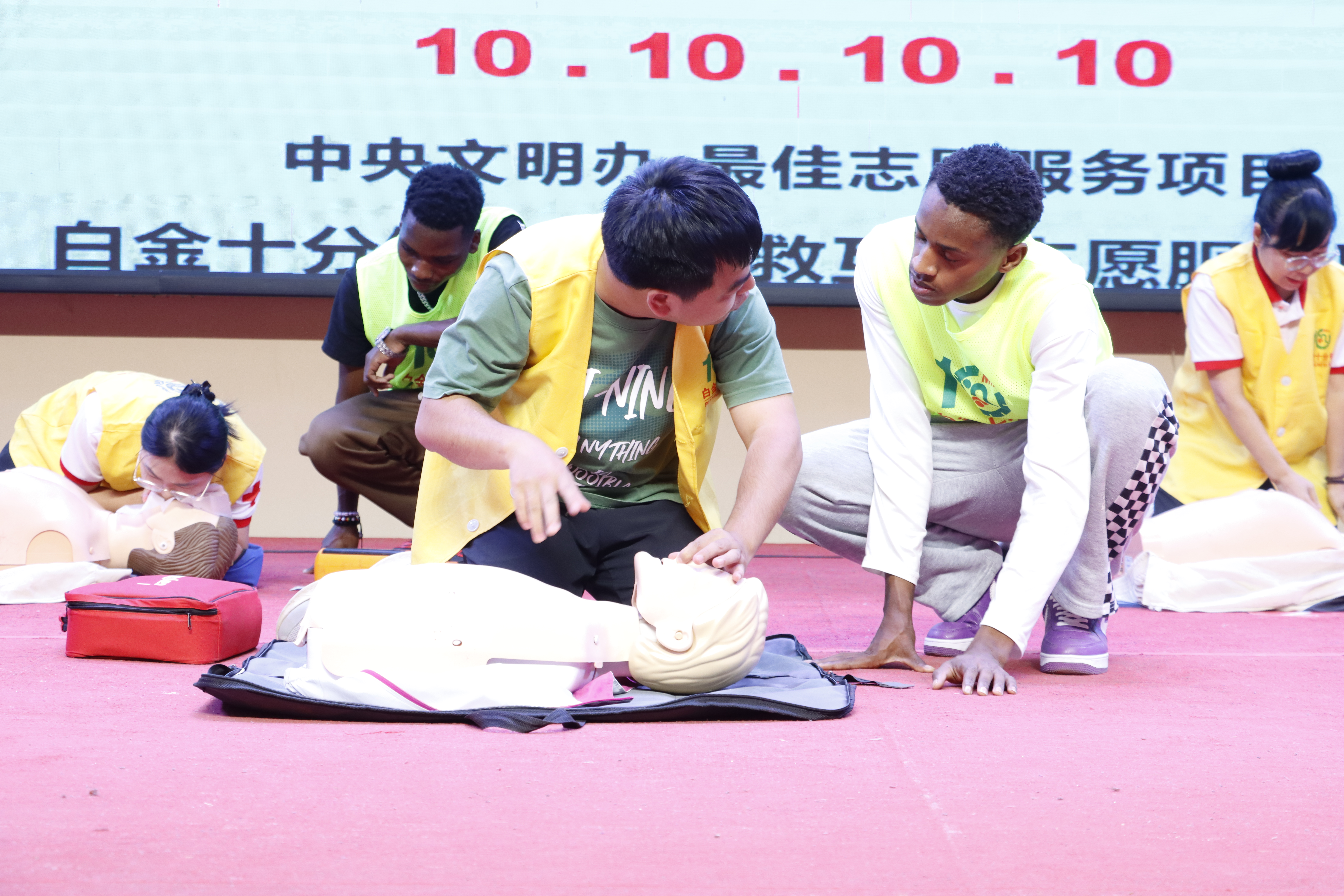 此外,活动还设置了自救互救技术台下传授环节,40名海外留学生积极参与其中,他们不仅认真观看了急救技能演示,还在专家的指导下进行心肺复苏+AED组、海姆立克手法(气管异物解除)组、徒手止血包扎组等演练,通过这一环节,留学生们不仅掌握了基本的急救技能,还深刻体会到了急救工作的重要性和紧迫性。