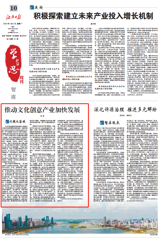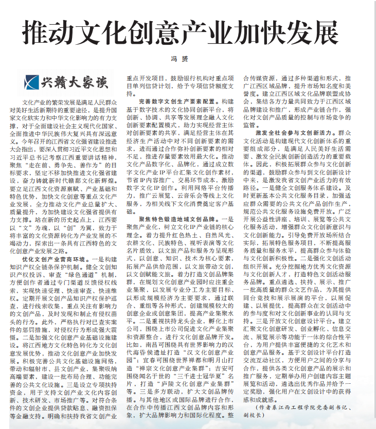 近期,校党委副书记、副校长冯赟的《推动文化创意产业加快发展》一文,无疑为江西省文化创意产业的未来发展提供了重要的参考价值。