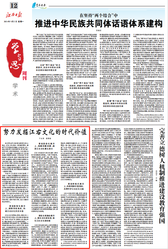 近期,校党委委员、宣传部部长于永清在《江西日报》理论版发表的《努力发掘江右文化的时代价值》一文,紧扣时代脉搏,为江右文化的传承与发展提供了极具价值的思路。