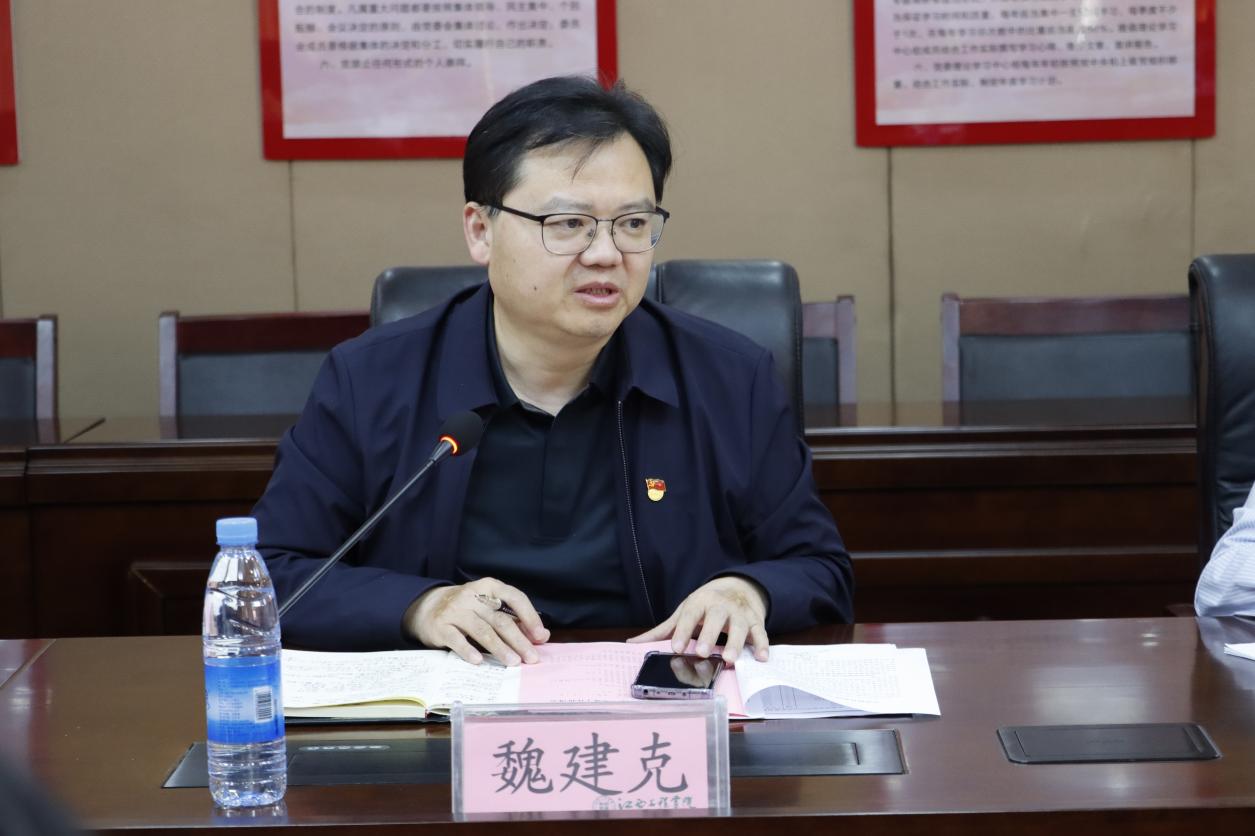 魏建克对基层党建工作提出了五点要求。一要持续不断强化自身理论修养。各基层党组织要扎实落实“第一议题”,规范落实“三会一课”制度和主题党日制度。各基层党组织书记要带头抓好个人学习,坚持先学一步、深学一层,不断提升理论水平和政治素养;二要旗帜鲜明加强党的政治建设。要坚守社会主义办学方向,认清高校意识形态领域的风险挑战,进一步提高政治站位,坚决守牢高校意识形态主阵地;三要敢于较真碰硬压实责任担当,做好本职工作,以生为本,以师为尊,切实维护好广大师生权益;四要坚持不懈的锻造一支高质量的党建队伍,勠力同心,筑牢坚强战斗堡垒;五要持之以恒的强化正风肃纪反腐,营造风清气正的良好生态。
