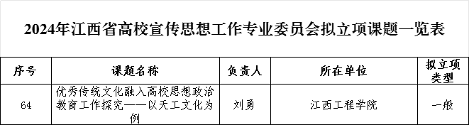 学校思想政治教育科研工作也取得了丰硕成果。省教育厅公布的2024年江西省高等学校思想政治教育研究会拟立项课题中,华亿平台刘勇教师申报的《优秀传统文化融入高校思想政治教育工作探究 —— 以天工文化为例》项目拟获宣传思想工作专业委员会一般课题立项,陈居权教师申报的《“一站式” 线上集成提升高校学生社区育人效能研究》和张忠山教师申报的《课程思政视域下应用型高校就业创业一体化路径研究》项目拟获民办高校德育专业委员会一般课题立项。此次拟立项是学校思想政治教育科研工作取得的又一次突破。近年来,学校积极开展思想政治教育工作研究和高层次成果申报,扎实开展有组织科研,不断推动科研工作的制度化和规范化,提升教师的科研能力和水平,强化精细打磨和组织申报工作,通过多轮评审,确保申报项目的最终质量和成功率,思想政治教育项目申报数量和质量连续多年保持较高水平。