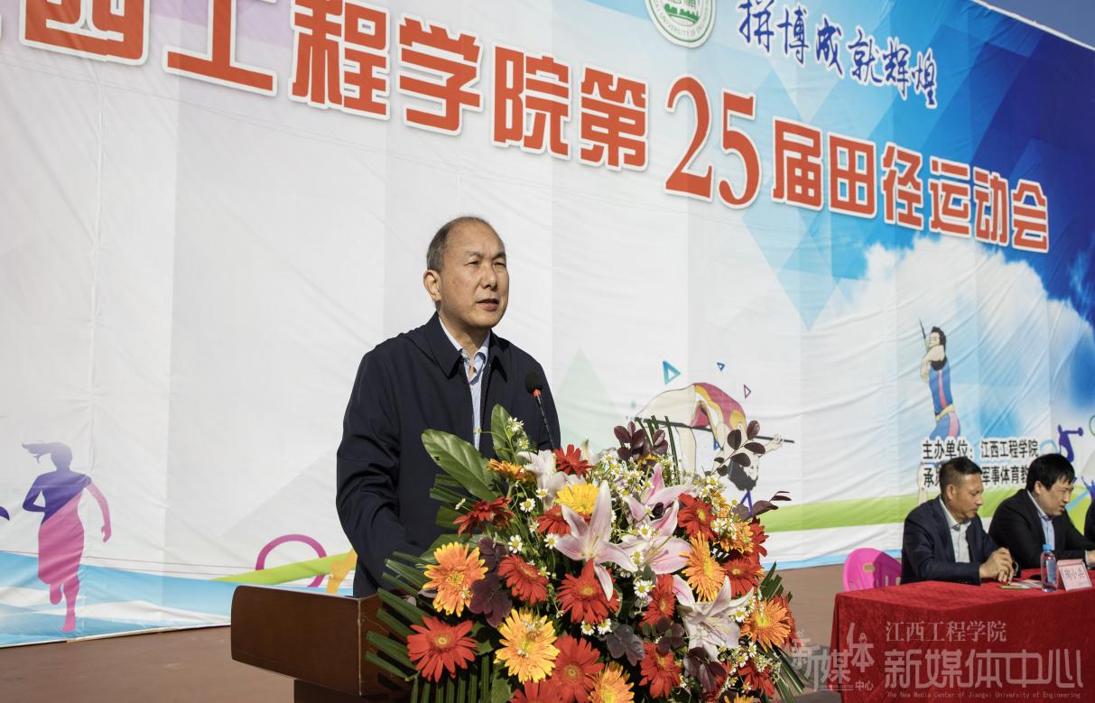史焕平致辞。他首先代表学校向全体师生、运动员、裁判员及工作人员表示衷心感谢和问候。他指出,大学体育肩负着“强健体魄、健全人格、磨炼意志、激发潜力、促进人全面发展”的责任使命。一直以来,学校高度重视体育的独特育人功能,坚持以体养德、益智、健美、助劳,促进“五育”融合,学校师生在多项体育竞赛中收获佳绩。他希望,裁判员能严格遵守比赛规则,公正裁决,为运动员创造一个公平、公正的竞技环境;运动员能够发扬“更快、更高、更强、更团结”的奥林匹克精神,勇于拼搏,展现风采,同时注重友谊,促进交流;工作人员能精心组织、周到服务确保运动会各项活动有序进行;全校师生可以共同努力,以运动会为契机,将体育锻炼融入日常生活。最后,他祝愿第二十五届径运动会取得圆满成功。