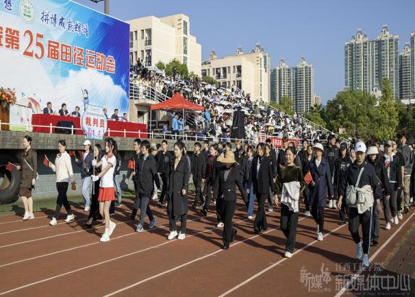 8时30分,伴着激昂的《运动员进行曲》,国旗护卫队、彩旗队、裁判员、运动员以及各二级学院方阵依次入场。