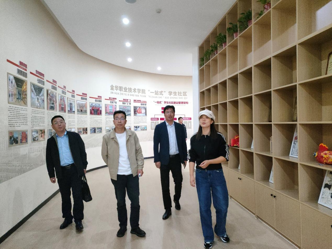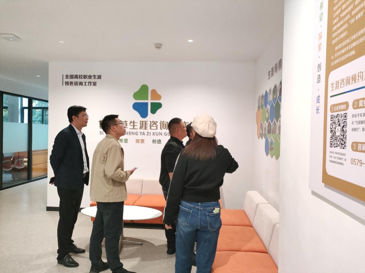 联合访企拓岗期间,冯赟一行还参访了金华职业技术大学,重点参观了“一站式”学生社区服务中心、四叶草生涯咨询工作室(2022年被教育部评为全国高校职业生涯特色咨询工作室)、大学生活动中心、退役军人服务站等。