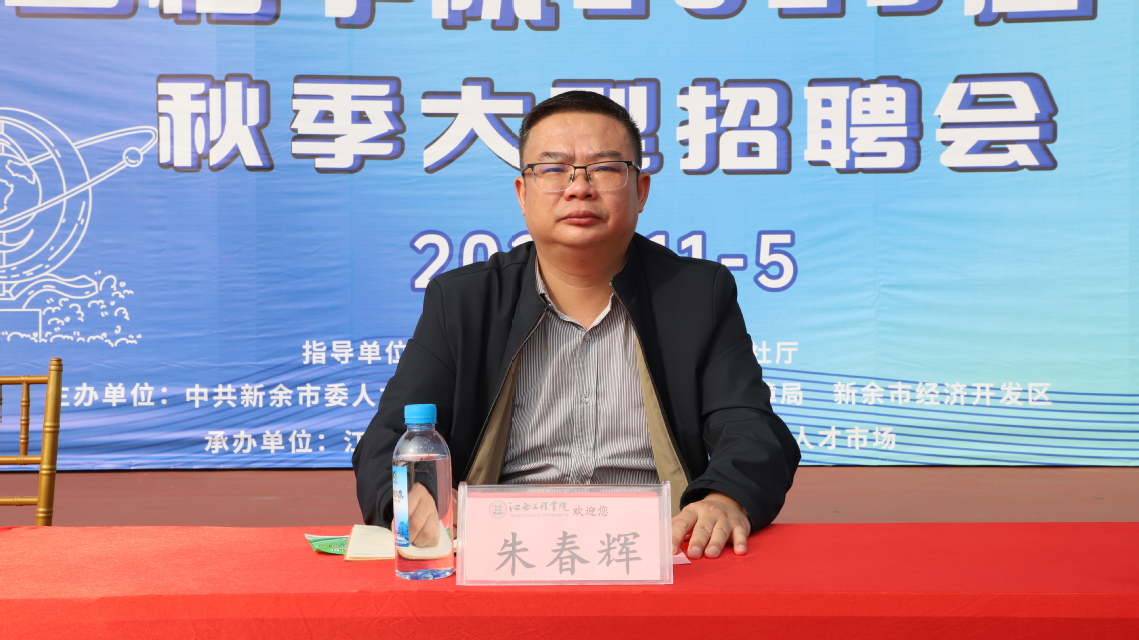 新余市人力资源和社会保障局党组成员、副局长朱春辉,校党委书记、督导专员魏建克,党委副书记、校长史焕平,学校创办人、理事杨名权,党委副书记、副校长冯赟,协讯电子(吉安)有限公司人力资源部主管廖丽珍出席招聘活动。