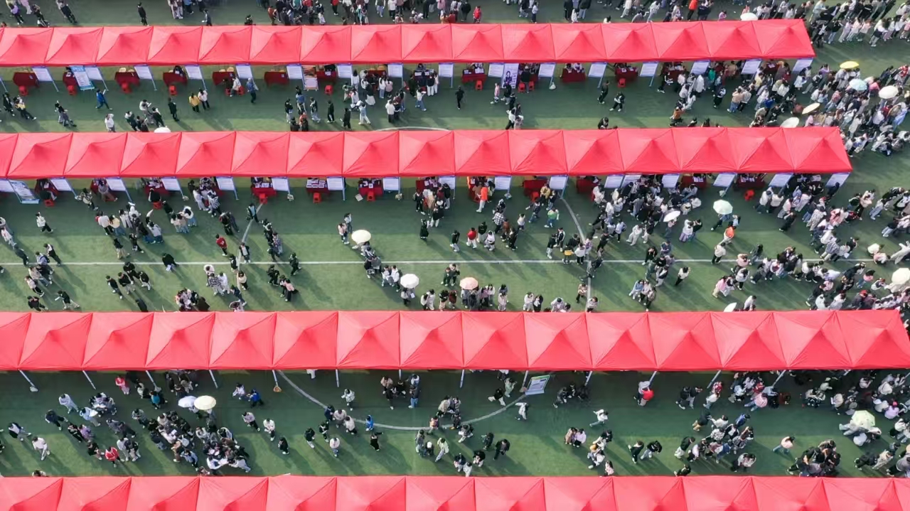 11月5日,我校2025届毕业生秋季大型招聘会在天工校区追梦运动场举行,来自全国各地的160余家企业携带500多个职位、10000多个岗位齐聚学校。招聘会吸引了4000多名学生参与,场面热闹非凡,为即将毕业的学生提供了一个展示自我与寻求就业机会的平台。