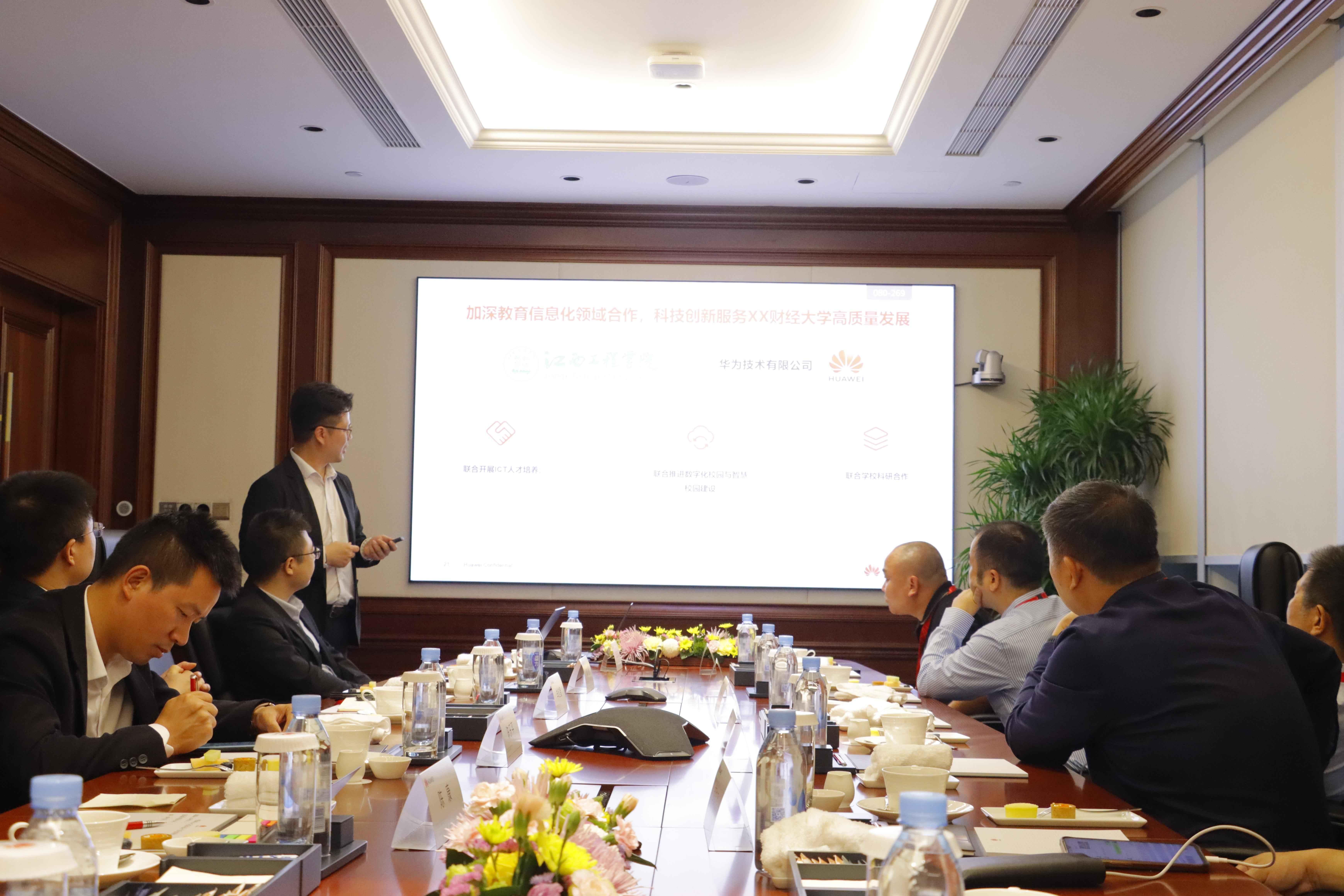 会上,华为公司王东介绍了《华为全栈开放能力,助力高校创新实践人才培养》,陈明介绍了《产教融合 共创 “大学 + ICT” 合作新模式》。随后,双方领导就人才培养、科研合作、智慧校园等工作进行汇报,对后续双方战略合作重点方向展开沟通并达成积极共识。