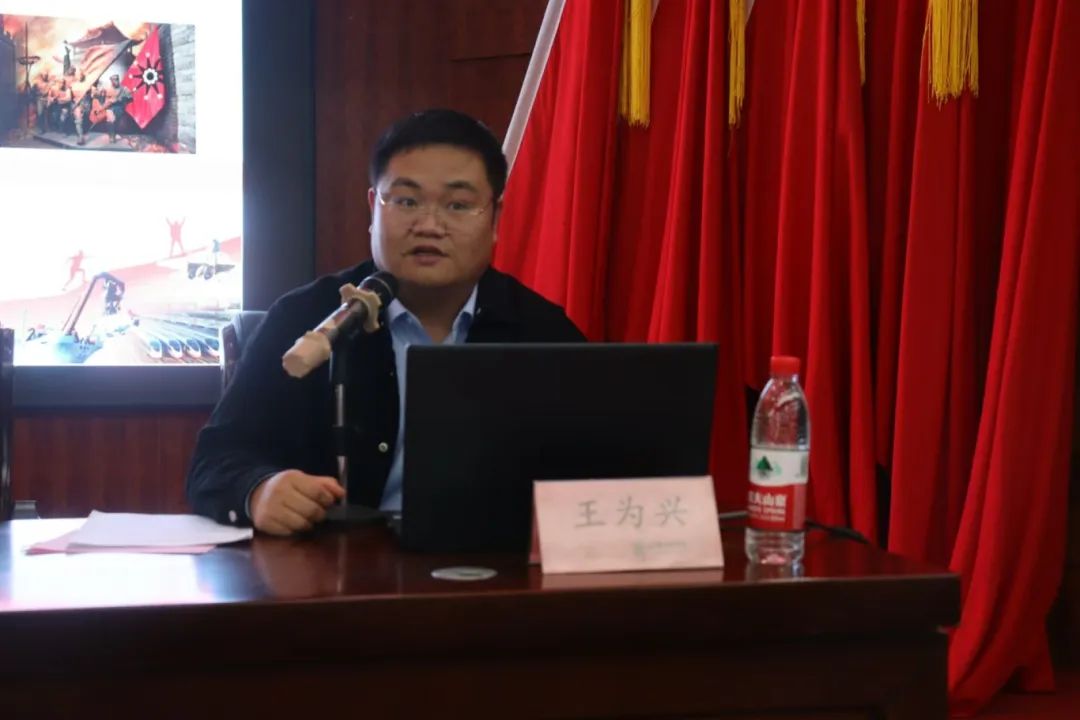 开班仪式后,马克思主义学院教师、新余市青年教师团成员王为兴为第十一期“青马工程”大学生骨干培训班学员进行理论授课。