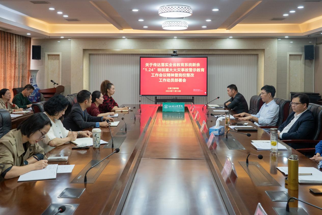11月14日,学校在行政楼七楼会议传达落实全省教育系统新余“1.24”特别重大火灾事故警示教育工作会议精神暨整改工作部署会。校党委书记、督导专员魏建克出席会议并讲话,强调要深入学习贯彻习近平总书记关于安全生产重要论述,深刻吸取“1.24”特别重大火灾事故血的教训,认真贯彻落实全省教育系统新余“1.24”特别重大火灾事故警示教育工作会议精神,做到以案为鉴、深刻反思、警钟长鸣,坚持把思想和行动统一到“1.24”特别重大火灾事故整改工作部署上来,全力以赴抓好校园安全工作,切实保障师生群众生命财产安全。