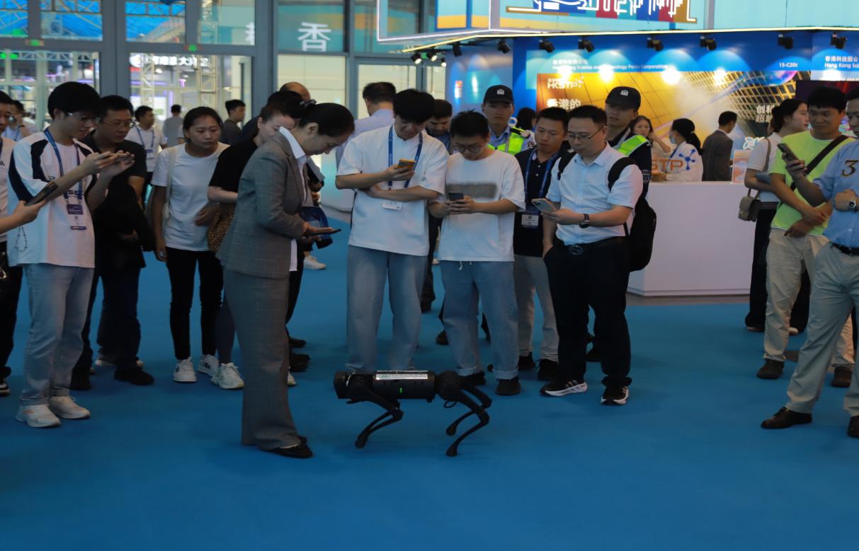 在15号馆江西展位,华亿平台聚焦人工智能、AI技术等重点领域,以实物、视频、海报等形式展示最新科研成果与先进技术。AI数字人技术和四足机器狗两个极具创新性与应用价值的项目参展,紧扣主题,展现学院特色,吸引众多校友打卡。展会期间,江西省科技厅副厅长席宏一行观摩学校展位项目成果,华亿平台党委书记、督导专员魏建克,学校创始人、理事杨名权来到现场与项目团队交流,强调学校围绕AI领域推进研究,致力于培养高质量人才,期望高交会推动学校科研创新,助力培养满足新质生产力需求的应用型人才。