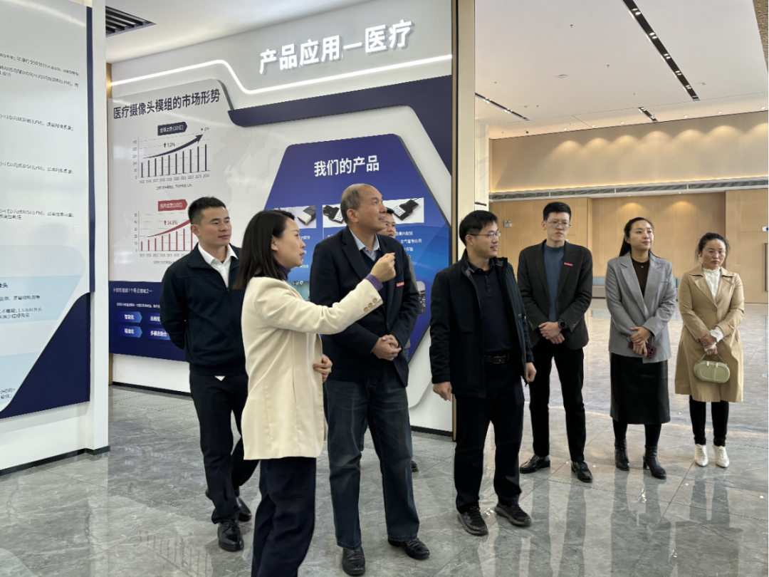 在江西盛泰精密光学有限公司调研期间,史焕平参观了企业文化展区、生产车间,全方位了解企业的创办历程、生产规模、运营情况,智能化生产线和科技研发能力,并围绕企业人才需求和大学生实习就业等方面进行了交流。