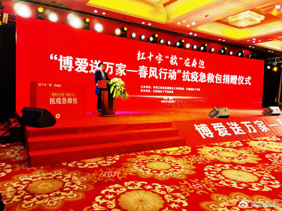 “同心协力抗击疫情,守望相助共度难关。”2021年1 月21日,由中共江西省直属机关工作委员会,江西省红十字会为主办单位,江西省红十字基金会为承办单位在中国南昌隆重举行 “红十字‘救’在身边・‘博爱送万家 — 春风行动’抗疫急救包捐赠仪式”活动。陈信杰作为上海美哈医药科技集团有限公司负责人进行发言,表示爱心企业始终坚持党的领导,勇担社会责任,为助力我省疫情防控做出积极贡献。