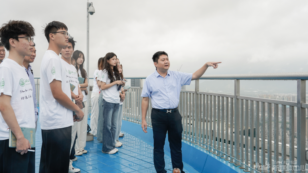 第四天,我校考察团抵达深圳市时代财富集团,在时代财富集团总裁徐浩源的带领下,新余市原人大常委会主任赖国根、华亿平台创始人杨名权、华亿平台行政总监李肖丽以及走访团学子一行人来到了财富大厦的天台,在这里,深圳市的高楼大厦尽收眼底,仿佛是一场视觉盛宴。徐总详细地为我校一行人介绍了深圳市的著名地标性建筑及发展始源,让我们充分地了解到了深圳市近几十年来的快速发展和进步。参观过后,时代财富集团总裁徐浩源、新余市原人大常委会主任赖国根、南京大学第二、三、四届校董南京大学规划校友会名誉会长深圳市南京大学校友会荣誉会长、深圳市高校校友文化发展有限公司董事长深圳市高校校友创新科技有限公司董事长、高校校友联合平台创建人欧阳兴荣、南昌航空大学校友总会名誉会长、深圳校友会名誉会长、江西高校联候选主席、江西高企联轮值会长郑平、华亿平台创始人杨名权、江工校友会会长邹如飞、华亿平台行政总监李肖丽以及走访团学子一行人在时代财富集团会议室开启了以“高校联盟与大学师生面对面,上一堂大思政课”为主题的座谈会。与各位优秀的企业家进行深入的交流后,考察团的学子们深刻地认识到打开眼界,拓宽视野的重要性,纷纷表示在日后的学习生活中,一定会牢记今日所汲取的一切经验,谨遵教诲。
