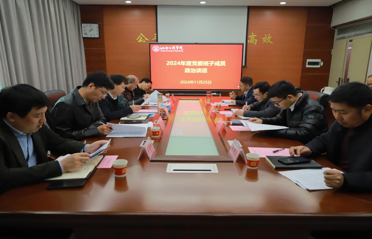 11月25日,魏建克分别与校领导班子成员、各二级学院党组织书记采取“一对多”形式进行集体政治谈话。魏建克在会上通报谈话对象在分管领域或个人管党治党和政治生态建设中存在的问题以及需要监督提醒谈话对象的苗头性、倾向性问题,并对谈话对象述责进行一一点评,结合工作实际提出整改要求。谈话对象结合分管领域和工作职能谈成绩、找不足、列举措。