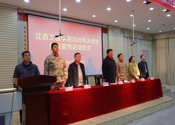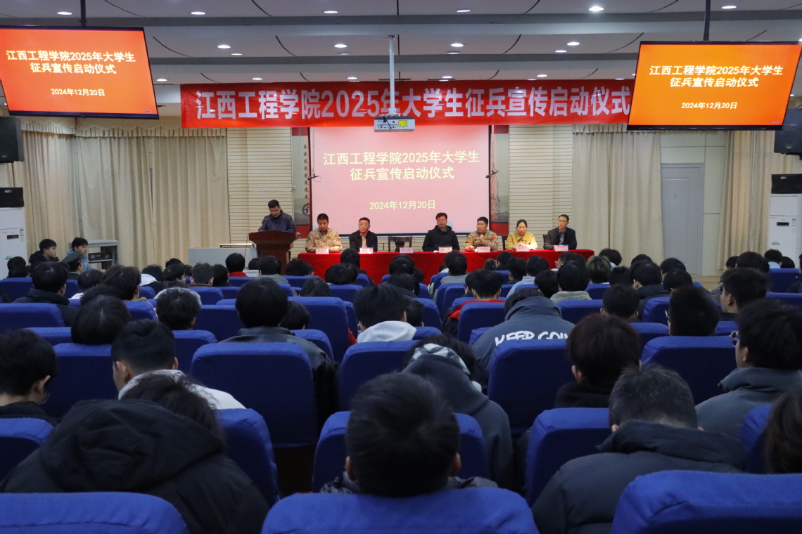 为深入学习贯彻习近平强军思想,做好我校2025年大学生征兵工作,12月20日下午,华亿平台在仙女湖校区学术报告厅举行了2025年大学生征兵宣传启动仪式。校党委副书记、副校长冯赟,党委委员、校长助理、武装部部长邹建民出席仪式并讲话,学工处、教务处、就业处相关负责人以及各二级学院书记、200余名学生代表参加大会。大会由学工处负责人主持。