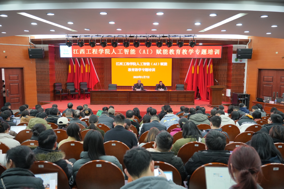 (本网讯 于永清 报道)为进一步提升教师数字化素养和教育教学能力,加快人工智能在教育教学领域的创新应用与深度融合,满足学校教师对AI赋能教育教学的迫切需求,推动AI时代的教学改革创新,1月7日,学校“人工智能(AI)赋能教育教学”专题培训在天工校区学术报告厅一楼举行。学校邀请了江西中医药大学博士陈谦峰、秋叶集团金牌讲师张莹等专家作专题讲座,各二级学院350余名教师参会学习。校党委副书记、校长史焕平出席并讲话,党委委员、副校长刘德华出席并主持大会。