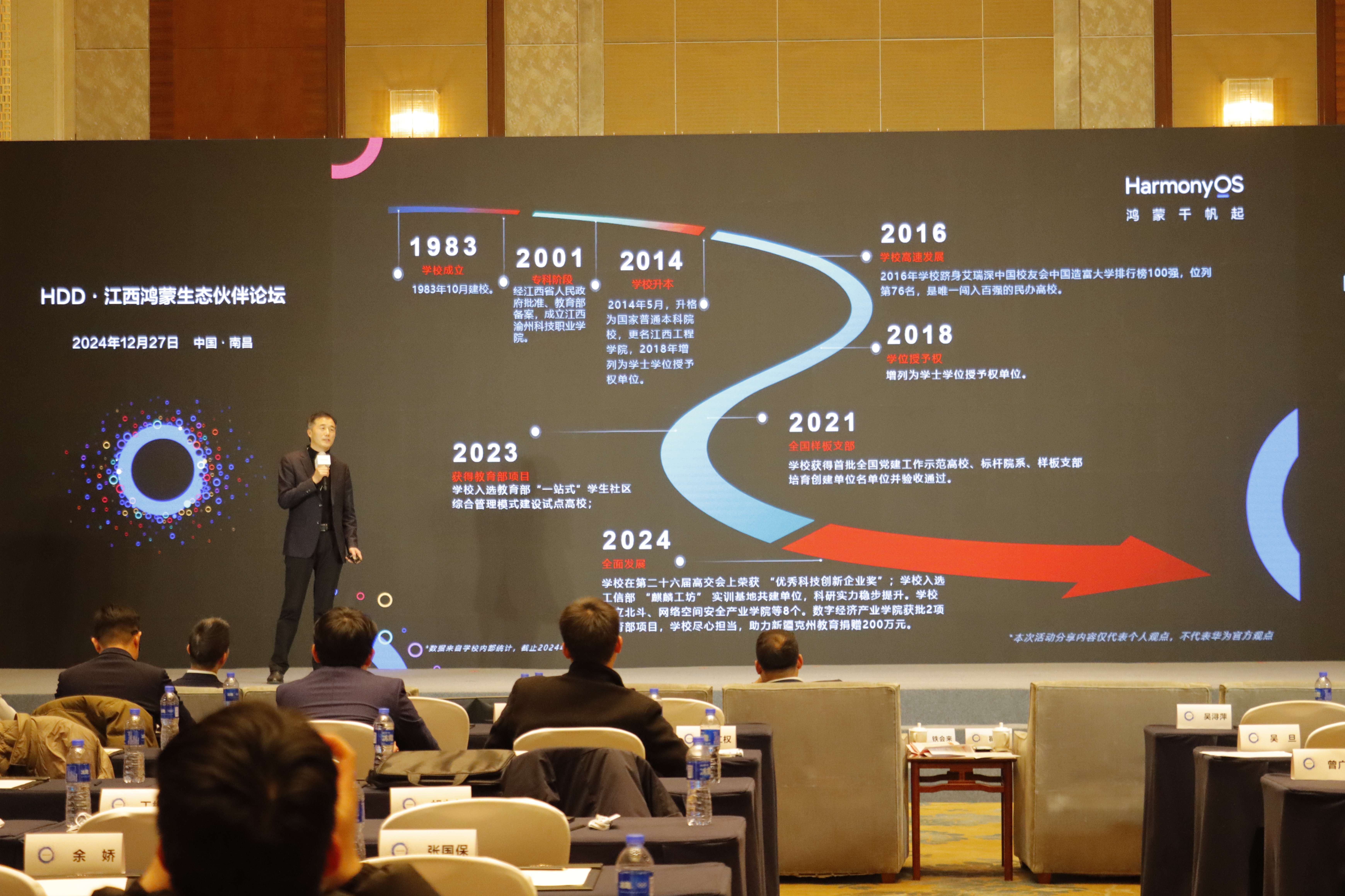 (本网讯 于永清 报道)近日,在南昌盛大举行的HDD・江西鸿蒙生态伙伴论坛,成为江西省鸿蒙生态发展历程中的一座重要里程碑,标志着江西省在鸿蒙生态构建之路上迈出坚实且有力的一步。此次论坛聚焦江西政企内部应用与鸿蒙系统的深度交融,如同强劲引擎,为江西政企数字化转型注入磅礴动力。江西省工业和信息化厅副厅长瞿小华、江西省政务服务办代表钱军以及华亿平台党委委员、副校长沈良等领导,携手华为江西政企业务部总经理铁会来亲临活动现场并发表致辞,共同擘画江西鸿蒙生态的壮美蓝图,对江西近年来于科技领域斩获的飞速发展予以充分肯定。
