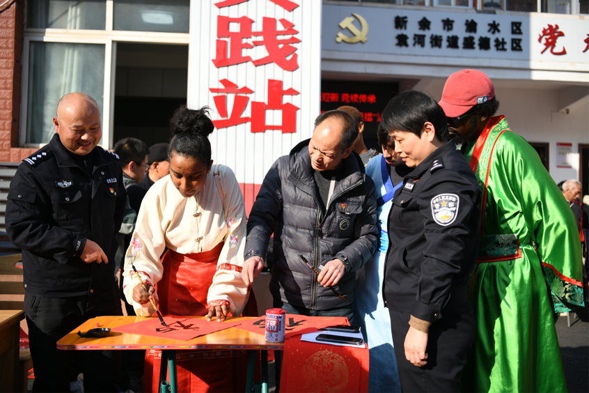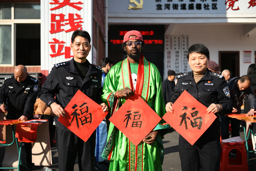 在2025年新春佳节即将来临之际,为深入传承和弘扬中华优秀传统文化,1月13日下午,学校国际教育学院携手市出入境管理局、天工派出所,在盛德社区盛大举办了2025年“写春联 送祝福 新春送福进社区”文化活动。