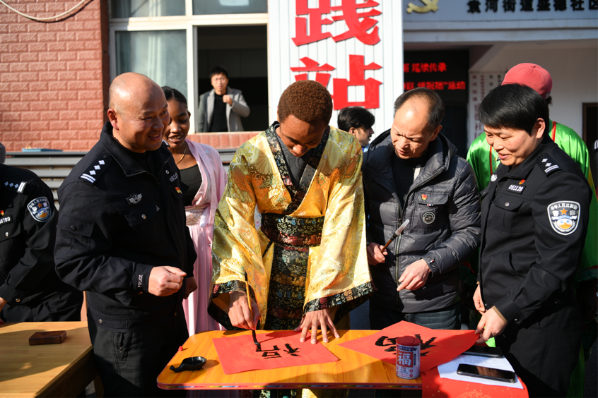 活动期间,民警与学校教师彭林华、王德立等老师手把手教外国留学生和社区居民写对联、“福”字,现场墨香四溢,节日氛围浓厚。来自六个国家的六名留学生积极参与,起初书写生疏,在老师指导下逐渐掌握要领。
