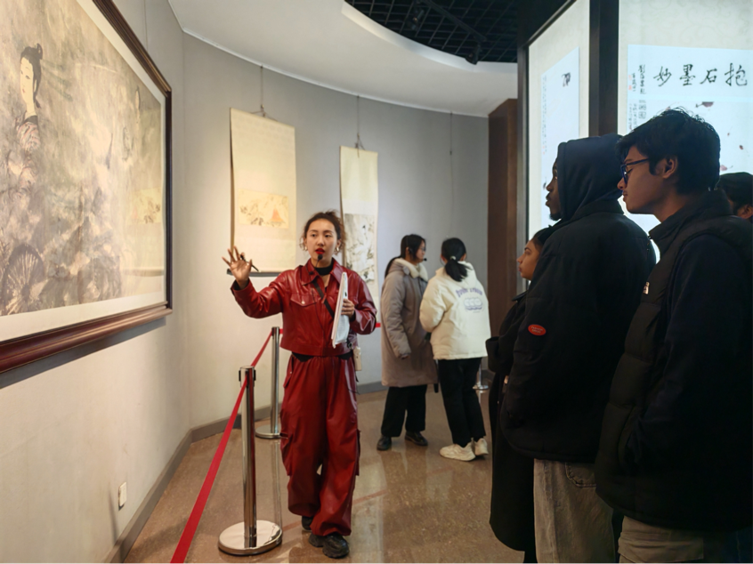 1月21日,国际教育学院精心策划一次文化交流活动,引领48名来自18个国家的留学生踏入傅抱石纪念馆,深入探寻中国传统国画的精髓,感受中华艺术的独特魅力。