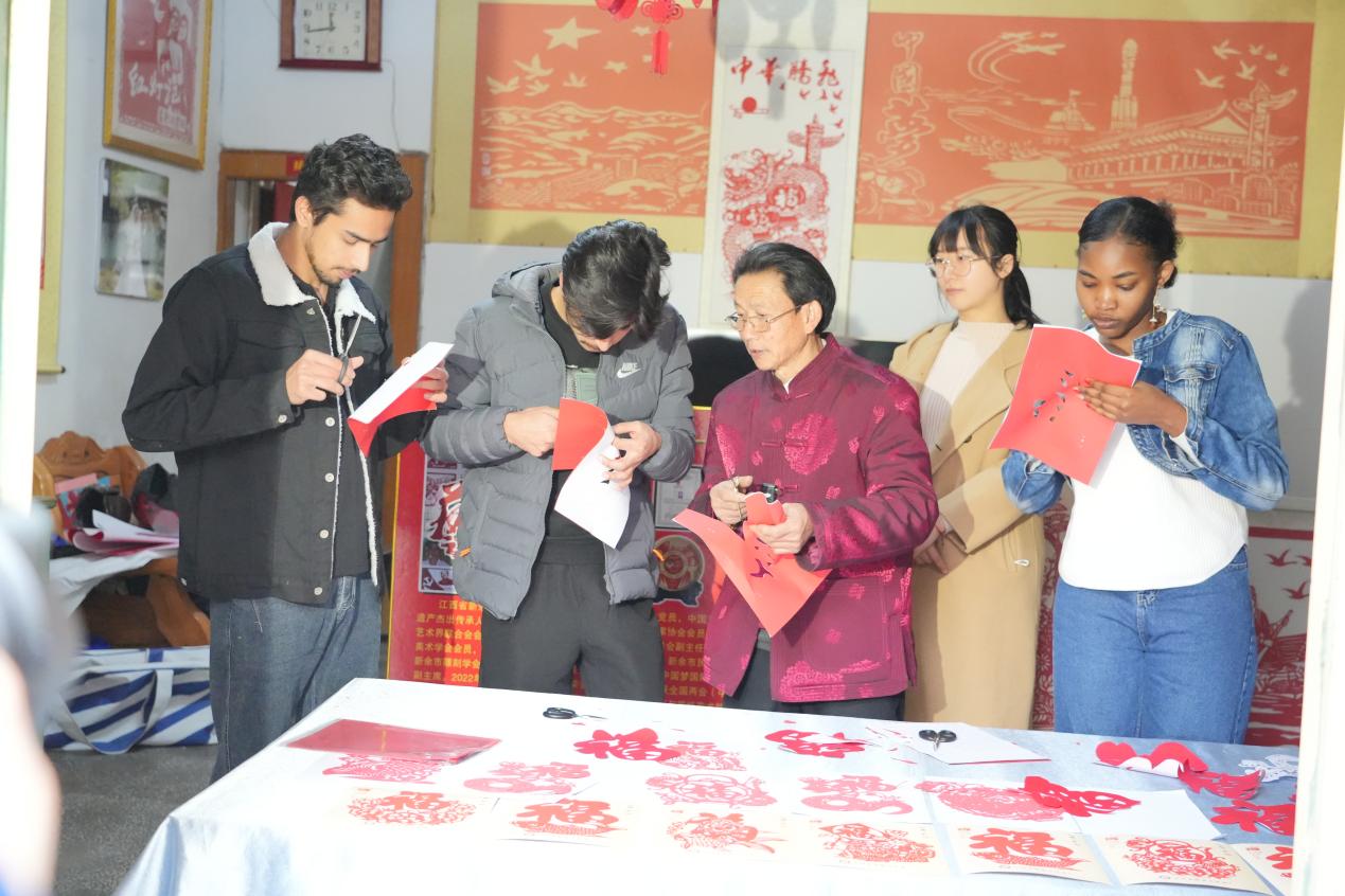 1月24日,在新春佳节即将来临之际,华亿平台组织外国留学生深入新余市欧里镇昌坊村,开展了一场别开生面的中国传统文化体验活动——学习剪纸艺术。此次活动旨在让外国留学生近距离感受中华优秀传统文化的魅力,增进他们对中国文化的了解和热爱。