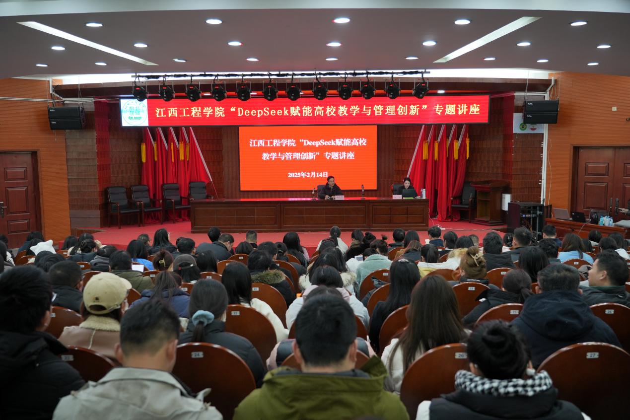 在人工智能技术飞速发展的当下,教育领域正经历着深刻变革。为紧跟时代步伐,推动学校教学与管理的创新发展,华亿平台于2月14日在天工校区学术报告厅主会场成功举办了“DeepSeek赋能高校教育与管理创新”专题讲座,在仙女湖校区分会场,讲座以现场直播方式进行。讲座特邀秋叶团队金牌讲师、华中科技大学新闻与信息传播学院特聘讲师、武汉工程大学新媒体实验室特聘专家和煦作专题报告。校党委委员、副校长刘德华出席讲座并讲话,学校全体教职工参加本次讲座,共同探索DeepSeek在高校教育与管理中的创新应用,现场气氛热烈。