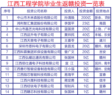 学校持续密切校地合作,积极服务新余投资江西。据不完全统计,学校优秀校友返赣投资达300余亿元,其中投资新余近15亿元,留余600余人,投资江西其他地方280余亿,为助力江西高质量贡献了力量。